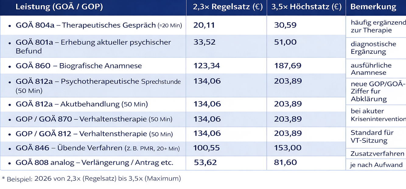 Honorarsätze in unserer Privatpraxis